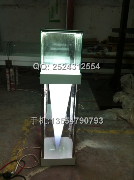 亞克力燈箱柜下面為一個(gè)倒立的三角形,側(cè)面是四根不銹鋼柱子支撐而起。柜臺(tái)玻璃門側(cè)開。深圳專業(yè)的柜臺(tái)制作廠家:www.flaredup.com.cn 。