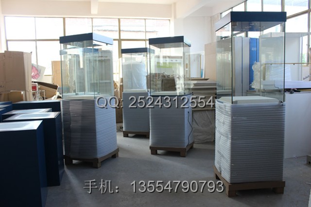 湛江瓷器展柜總共35個,都是同一款,制作工期10天,展柜尺寸:600*600*2000mm,以下展柜的細節圖包括展柜燈具,展柜玻璃,展柜開門方式,展柜鎖具等細節圖。