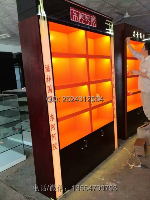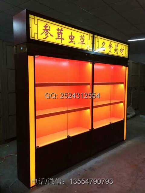 蟲草展柜為大芯板做基層,表面沙比利面板飾面,內包黃色絨布,展柜尺寸:1200*400*2400mm,該批展柜數量為15個。
