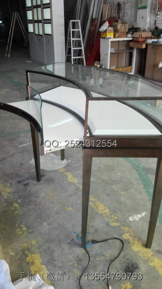 這個是田貝的一個珠寶展廳制作的柜臺,展柜采用不銹鋼制作,表面電鍍古銅色,玻璃為超白玻鋼化玻璃。深圳華信公司專業的珠寶展柜制作廠家,為你提供專業的訂做業務。