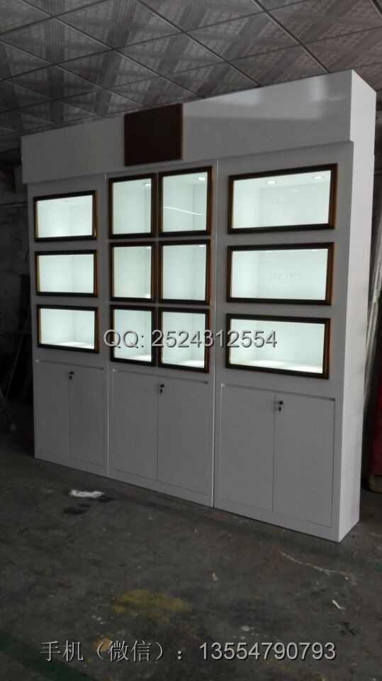 電鍍古銅色不銹鋼珠寶展柜訂做側開玻璃實物圖: