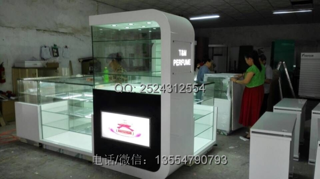Perfume香水白色烤漆化妝品展示柜車間組裝實拍圖(二):
