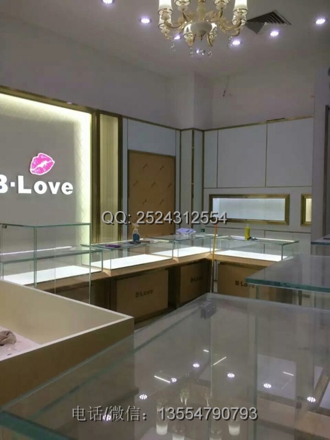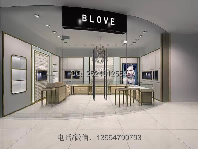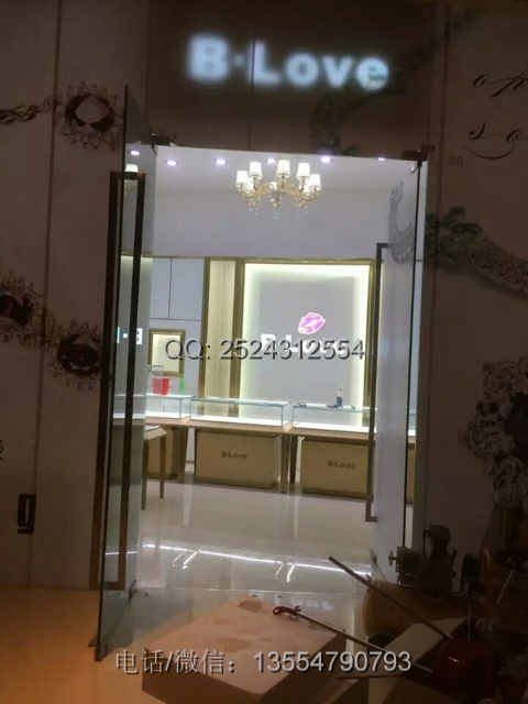 走進店鋪,天花吊頂的水晶吊燈,大氣不銹鋼珠寶展柜和格調高雅的燈箱烘托出B.love品牌的不凡和魅力。如果你需要類似珠寶柜臺,你可以聯系我們,工廠免費出店面的設計效果圖。