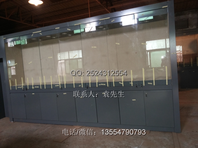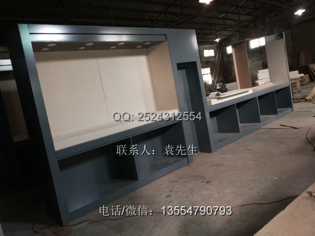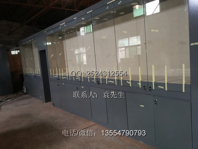 該會所的展柜都是靠墻放的,尺寸都是2.4米高,一共28米,側(cè)寬500mm,該會所的展柜與一般的博物館里面的不太一樣,展柜下面是地柜,一般的書畫展柜下面不帶地柜的。展柜是大芯板做結(jié)構(gòu),表面中纖板深灰色烤漆,超白鋼化玻璃。展柜側(cè)開門,由于客戶要求不高展柜的價格也就是2850元一米。