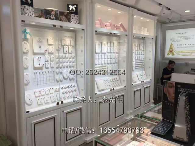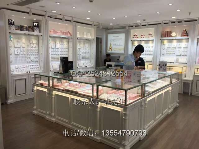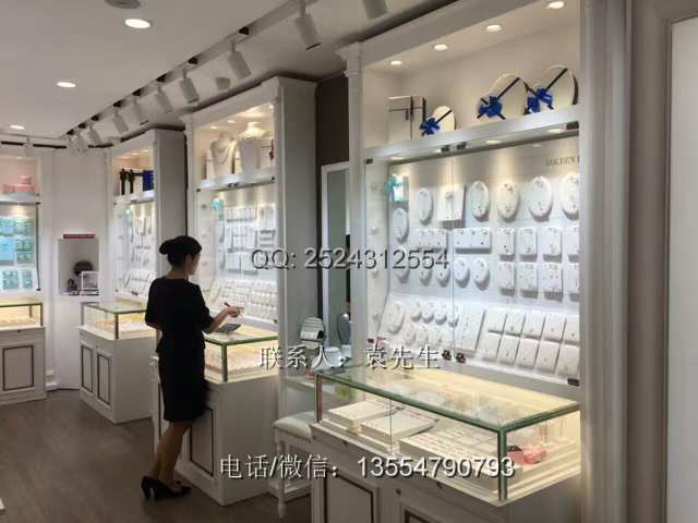 金品緣珠寶整個(gè)店面白色是其主要風(fēng)格,珠寶展柜白色亮光烤漆,歐式羅馬柱造型,這種類型的珠寶展柜造價(jià)是3150元一米如果你需要類似的你可以咨詢工廠。