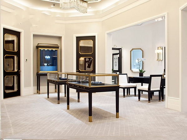 其次,珠寶店面的墻壁是一個非常好的宣傳用地。墻壁裝飾應注意企業形象、商品形象、品牌形象及服務形象的塑造。在墻壁上,可以適量張貼珠寶首飾品牌的宣傳畫、企業徽標、企業服務項目公告等,以增長顧客對企業及商品的認識與象。