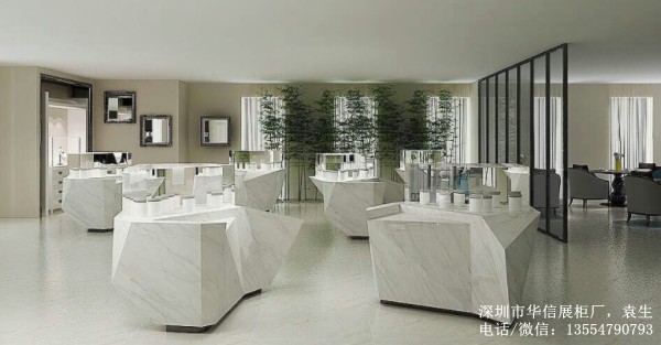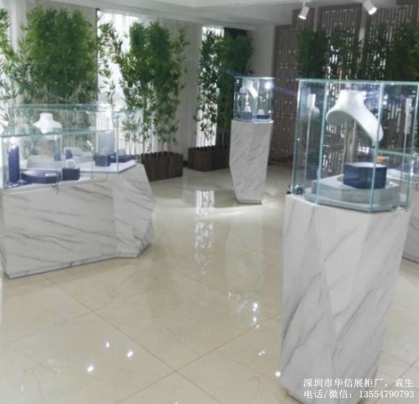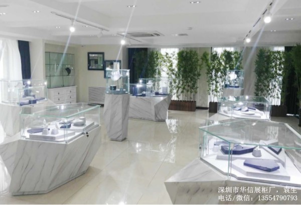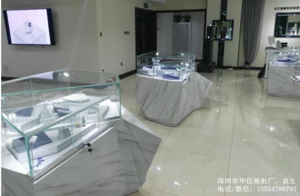 這個(gè)深圳南山區(qū)李先生的一個(gè)珠寶展廳設(shè)計(jì)效果案例,下圖是擺上產(chǎn)品的實(shí)物圖。這款珠寶展柜外觀看來(lái)是大理石,這樣的材料不但節(jié)省成本而且外觀看起來(lái)美觀大氣,提高整個(gè)展廳的形象。深圳華信展柜廠專業(yè)的展柜制作廠家,歡迎前來(lái)具體詢價(jià)。