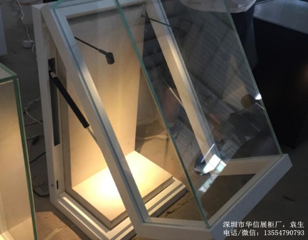 這種類似的展柜一般適用于博物館,名人作家字畫等各類珍藏館,一般是直接固定在墻上的,內部射燈點綴下,開啟都為液壓掀起式。鑰匙孔的位置都是在兩側面。