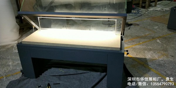 博物館桌柜常用到的款式大概有三種,一是下面帶地柜的,第二是下面沒地柜的,第三就坡面桌柜。這幾款一般的常規尺寸都是1200*600*950mm,展柜上面是玻璃罩,可對展品起到有效的保護作用。桌柜的玻璃罩內可根據客戶要求安裝LED射燈、LED燈條等多種燈具;玻璃罩也可根據需要選擇超白玻璃或者夾膠玻璃兩種。博物館桌柜的開門方式也從最早的背倒式和抽拉式開門發展到現在比較先進的液壓掀起是開啟開門。下面附三種款式的圖片。