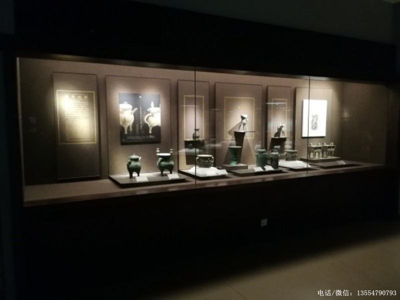 博物館展柜主色調是暗色,突出以暗襯亮。由于文物的歷史年代長,本身不會出眾,可能還不如存放的展架,展臺漂亮.因此,我們在進行照明處理時,應將燈光集中于展品,以突出展品。而如果主色調是暗色的,它能吸光,這樣人們的視覺焦點就會很自然地轉到展品上來。美術館展柜空間就不一樣了,藝術品本身比較光彩奪目,我們只要通過照明將其質地細節(jié)充分表現(xiàn)出來就可以了,故其空間環(huán)境大多以亮色為主。
