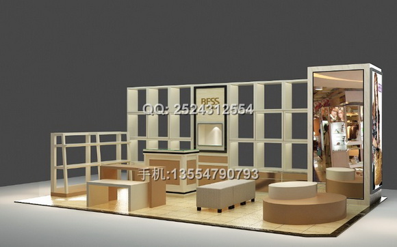 ? 此款箱包展示柜在設計上,是根據具體的場地尺寸給出的因地制宜的設計,色彩搭配,以及燈光設計都是根據產品特點和產品的主流色彩來設計的。