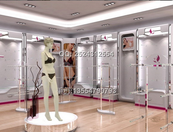 ? 品牌內衣展示柜帶有豐富的配件,可搭配不銹鋼掛件、亞克力、鋼化玻璃、鋁合金等,并且每個組件能夠錄活安裝,多種顏色搭配。豐富的選擇可以讓您的內衣店裝修設計效果更加滿意。