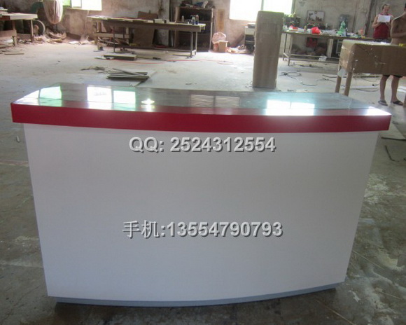 1、收銀臺板材:選用進口高密度板,抗彎力強,不易變形。