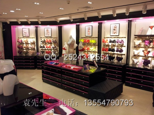 深圳萊蒂妮斯內衣展廳裝修效果由華信展柜廠設計制作,黑色是主色調。